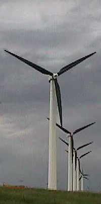 There are three phases of wind power/electrical development within the Buffalo Ridge Wind Resource Area on US 14 between Marshall and Lake Benton. The generators are at the top of 168-foot hollow steel towers. Three blades on the turbines are painted black to improve their ability to shed ice and wind sensors are kept free of ice by heat lamps positioned above them. Landowners receive lump sum payments and the town of Lake Benton Township receives property taxes for Lincoln County and its school district.